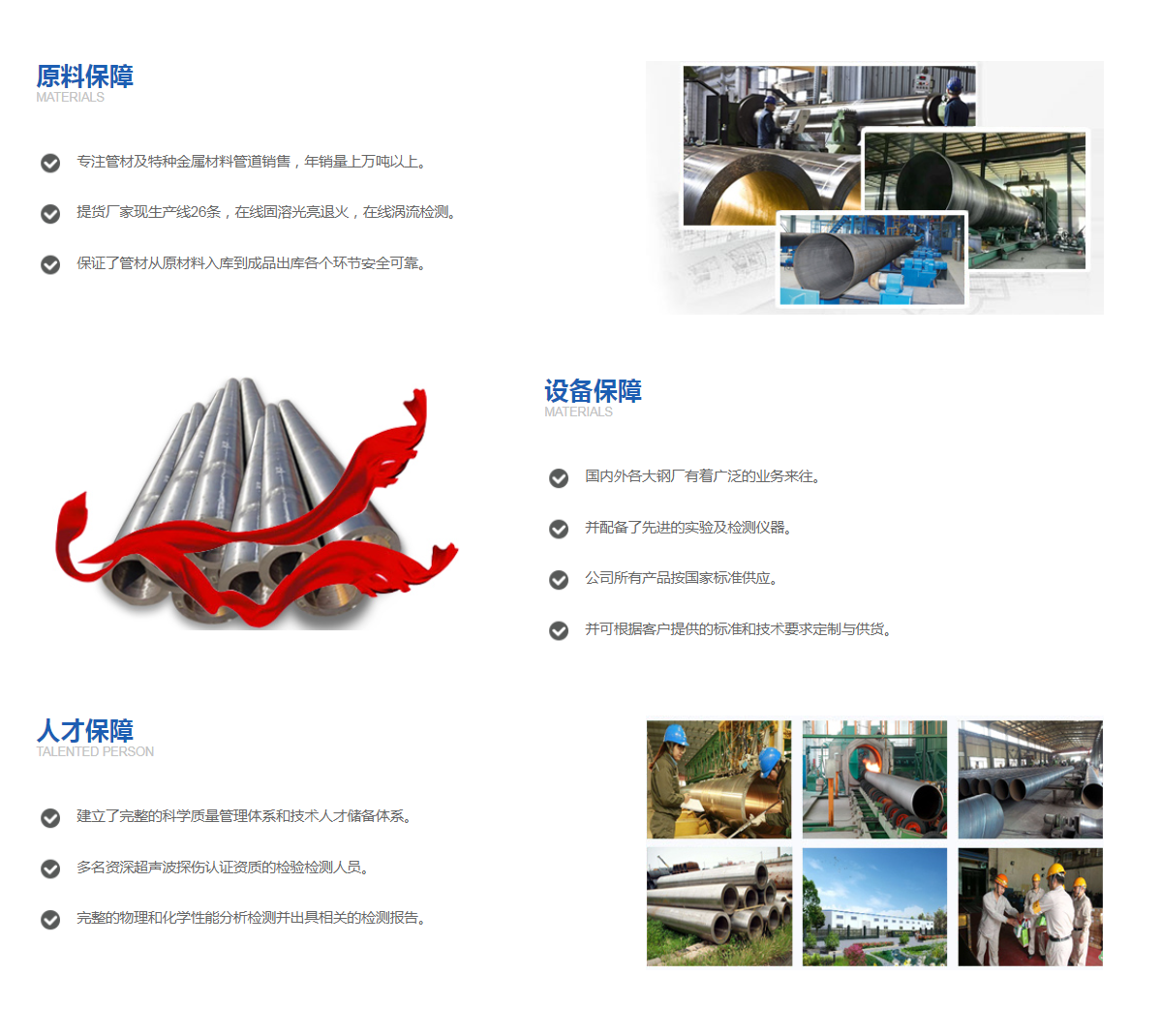 山東鑫盛鑫鋼鐵有限公司是一家專業(yè)銷售:無縫鋼管,合金管,異型管,精密管,圓鋼,軸承鋼的大型無縫鋼管廠廠家??啥ㄗ?多種規(guī)格,多種型號的無縫鋼管。另常年兼營成都、包鋼、冶鋼、魯寶、鞍鋼、安陽、洪都、天津等幾大鋼廠的國產(chǎn)進(jìn)口的無縫鋼管、無縫管、流體鋼管、直縫焊管,經(jīng)營品種多、規(guī)格齊全,保質(zhì)保量,常年庫存保有量7000噸以上。所售產(chǎn)品均執(zhí)行國家標(biāo)準(zhǔn),適用于工程、煤礦、紡織、電力、鍋爐、機(jī)械、軍工等各個領(lǐng)域。公司始終堅(jiān)持“公正、客觀、科學(xué)、誠信”的經(jīng)營原則,重合同、守信譽(yù)、保質(zhì)保量、按期交貨”。多年來公司憑借良好的信譽(yù)、優(yōu)質(zhì)的產(chǎn)品、低廉的價格享譽(yù)全國30多個省、市、自治區(qū),產(chǎn)品出口歐洲、南美等十多個國家,深得用戶信賴! 常備材質(zhì):20#、45#、20G、16Mn、27SiMn、12Cr1MoVG、15CrMo、T91、10CrMo910、STFA25(P5)、STFA26(P9)、P11、P12、A335P91、A335P92、WB36[15NiCuMoNB5]、鋼研102(12Cr2MoWVTiB)等。執(zhí)行標(biāo)準(zhǔn)為:結(jié)構(gòu)管GB8162-1999、流體管GB8163-1999、低中壓鍋爐管GB3087-1999、液壓支架管GB17396-1999、高壓鍋爐管GB...